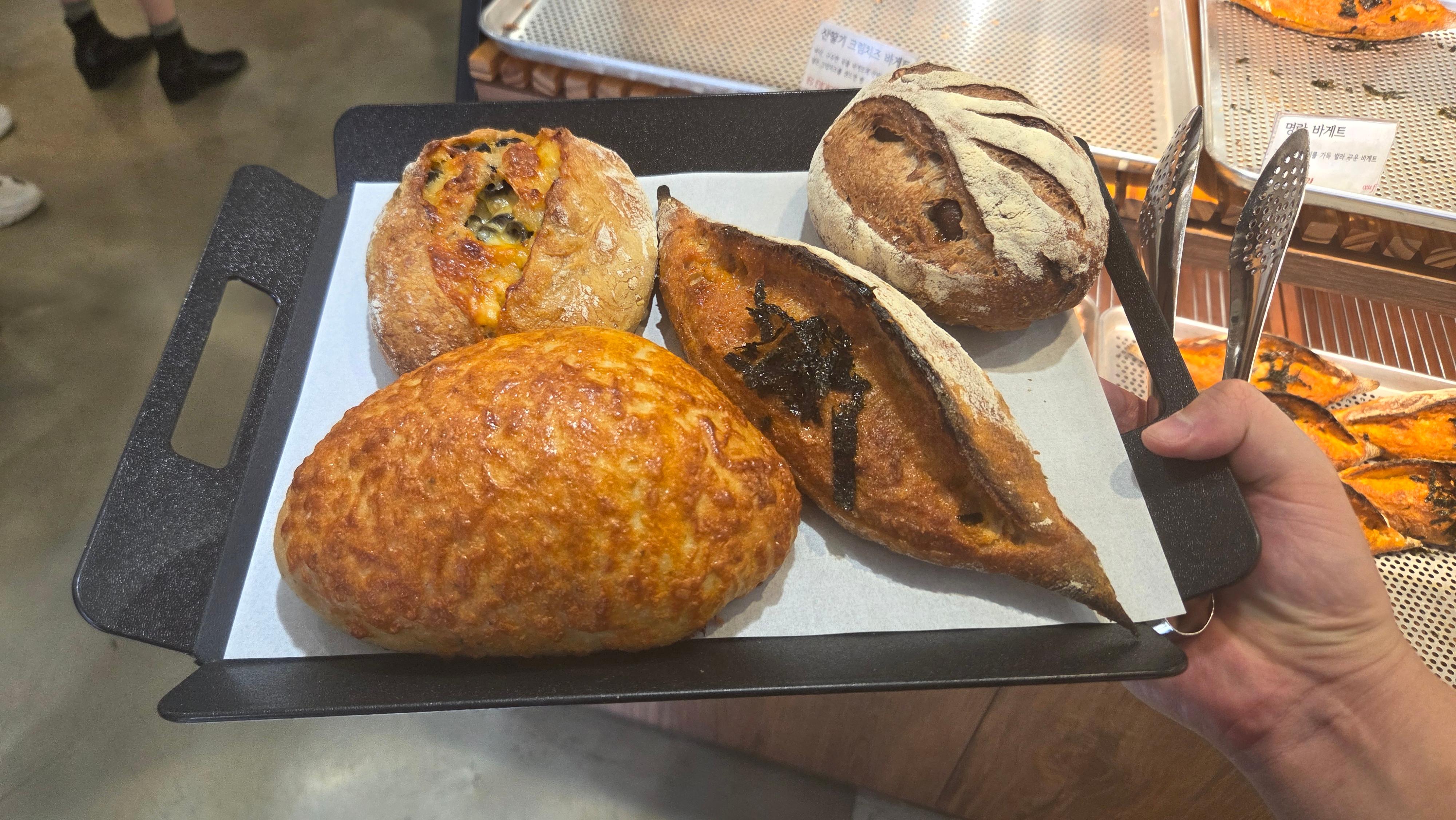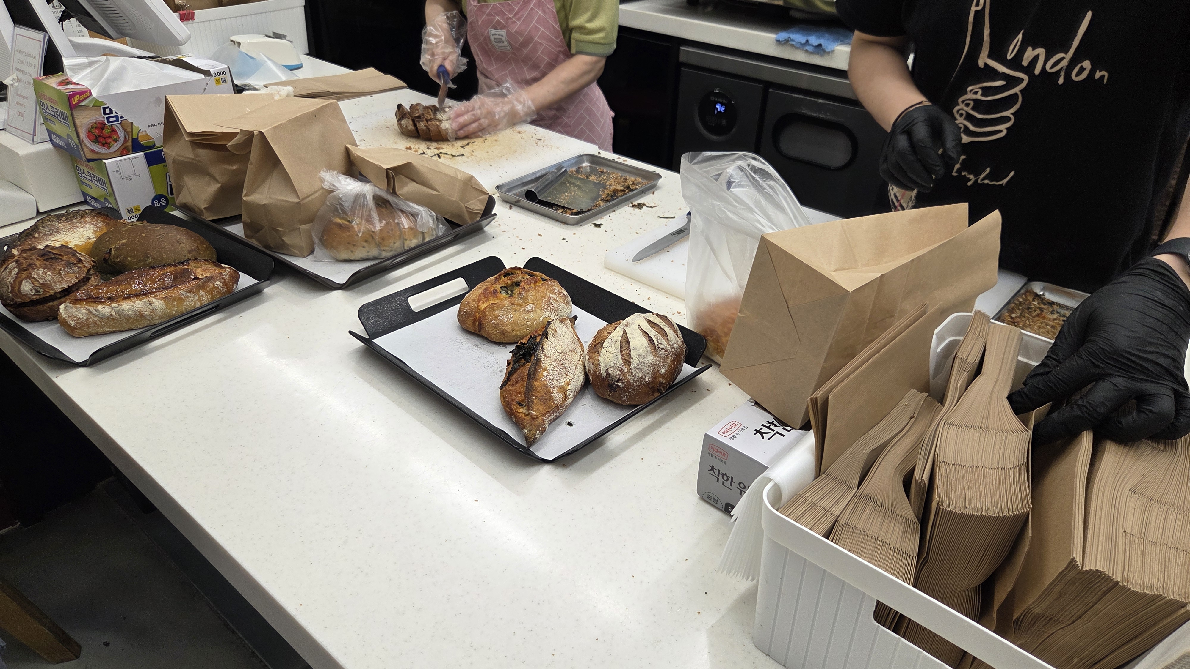 사람들은 삼삼오오 트레이를 들고 빵을 고르고 있었고, 진열대 앞은 순식간에 붐볐습니다. 흥미로운 건, 대부분의 손님들이 미리 어떤 빵을 살지 알고 온 듯 빠르게 집어 담는 모습이었어요. 저도 괜히 긴장돼서 평소보다 빠르게 선택하게 되더라고요.