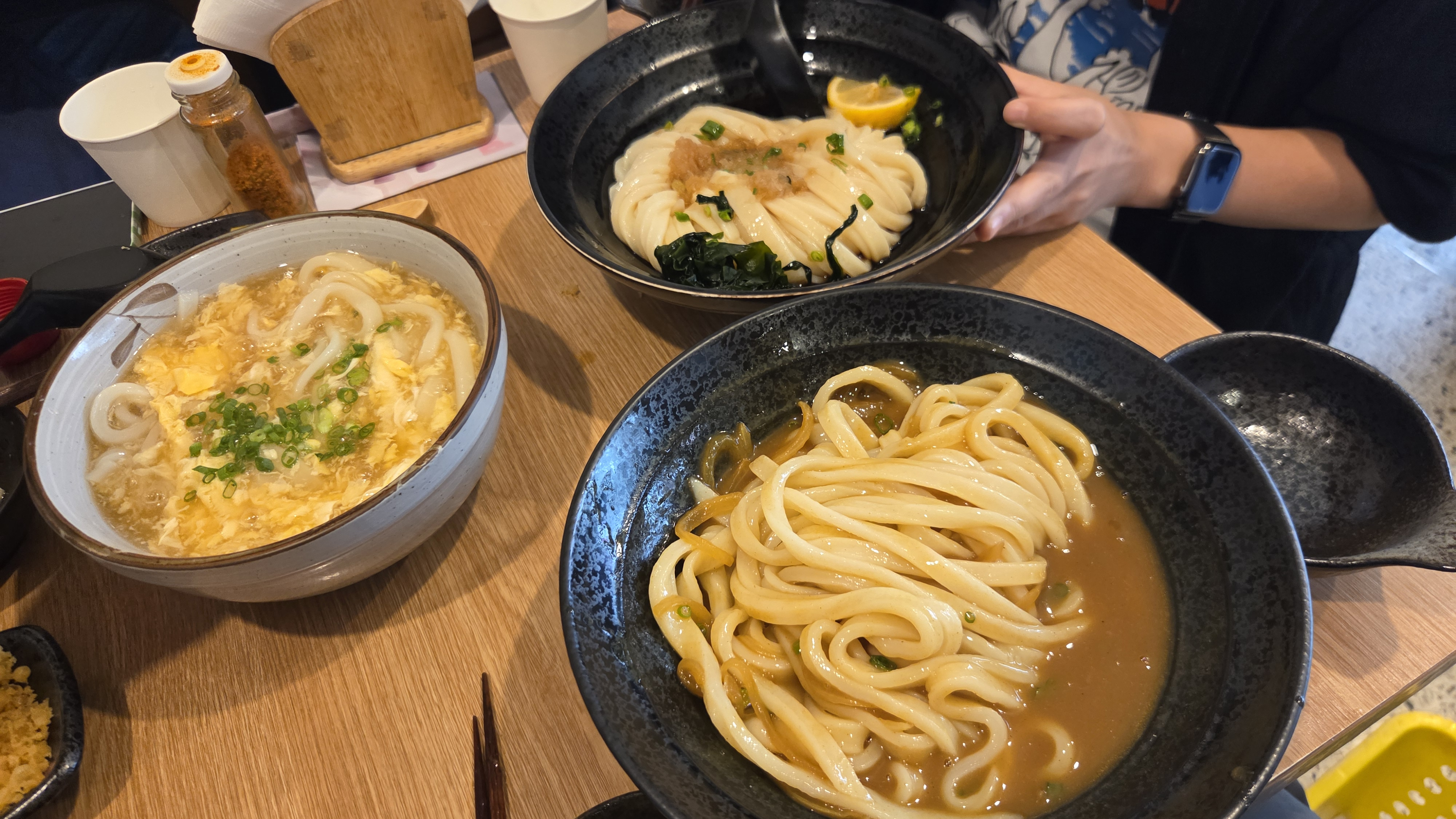 카레우동은 역시나 진한 카레 향이 입안 가득 퍼지며 묵직한 만족감을 줬어요. 일반적인 카레보다 부드럽고 은은하게 매콤해서 느끼하지 않고, 우동 면발과 잘 어울렸습니다. 국물이 자극적이지 않고 일본식 카레 특유의 단맛과 감칠맛이 살아 있어, “오늘은 색다른 우동이 땡긴다”는 날에 딱 어울리더라고요.
